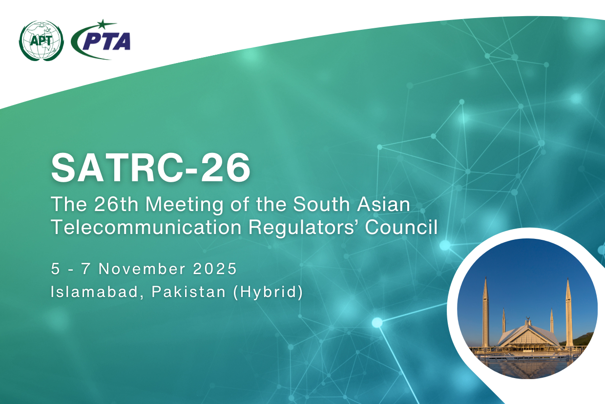 The 26th Meeting of the South Asian Telecommunication Regulators’ Council (SATRC-26) will be held from 5 to 7 November 2025 in Islamabad, Pakistan