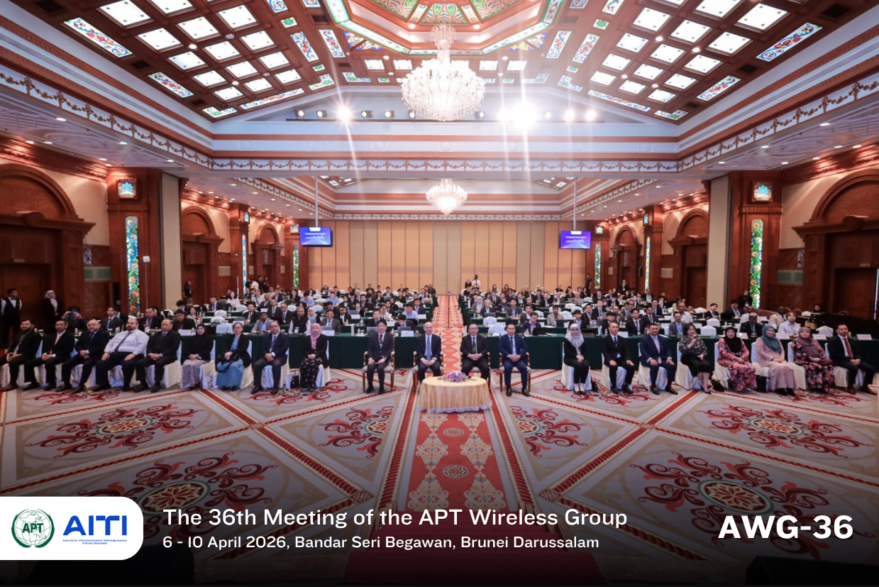 The Asia-Pacific Telecommunity (APT) successfully convened the 36th Meeting of the APT Wireless Group (AWG-36) from 6 to 10 April 2026 in Bandar Seri Begawan, Brunei Darussalam, with 336 participants from APT Members, Associate Members, Affiliate Members, and International Organizations. The meeting was hosted by the Authority for Info-communications Technology Industry of Brunei Darussalam (AITI).