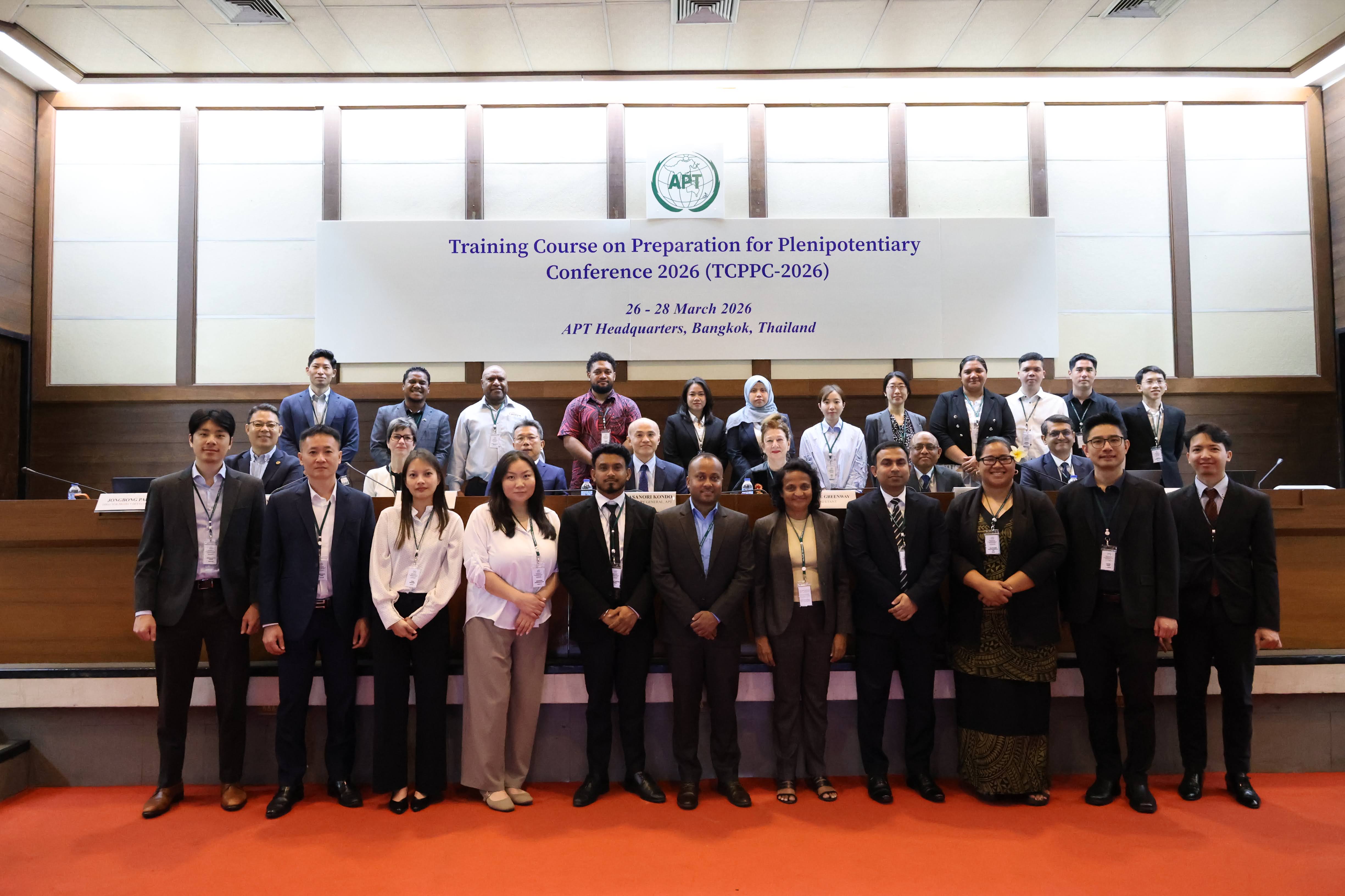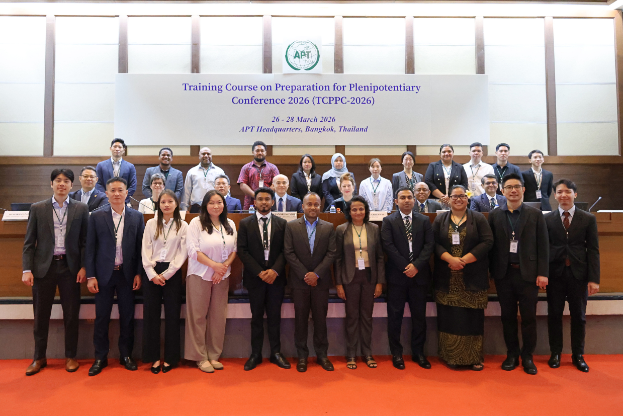 The Asia-Pacific Telecommunity (APT) will organise a Training Course on Preparation for Plenipotentiary Conference 2026 (TCPPC-2026) from 26 to 28 March 2026 in Bangkok, Thailand. This training course provides an opportunity to experience discussion, negotiation, and coordination on issues at international conferences. This training course is supported by Australia (Extra-budgetary Contribution from Australia: EBC-A) and Japan (Extra-budgetary Contribution from Japan: EBC-J).